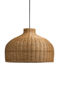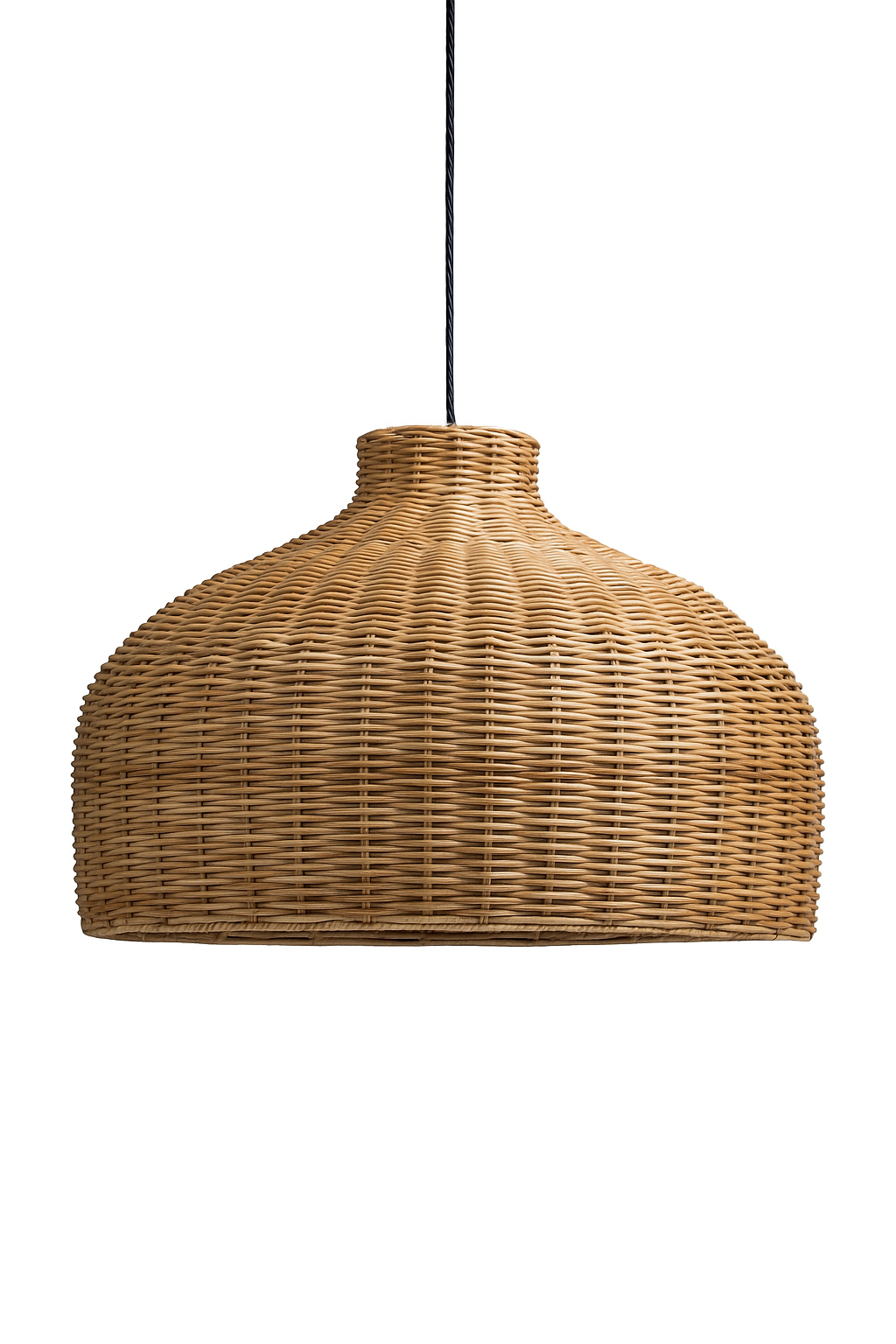 Unique Pendant Lamp, shaped like a Dome, is meticulously woven from natural rattan cane. Its warm, inviting glow and distinctive design make it a statement piece for any space.